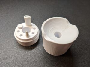 次に作成したのはApple Pencil立てです。こちらのモデルは、二つの部品に分かれていて、替え芯や端子の変換を収納することができます。こちらを印刷することで、複数の部品に分かれていてもちゃんと組み立てることができるかを試してみました。