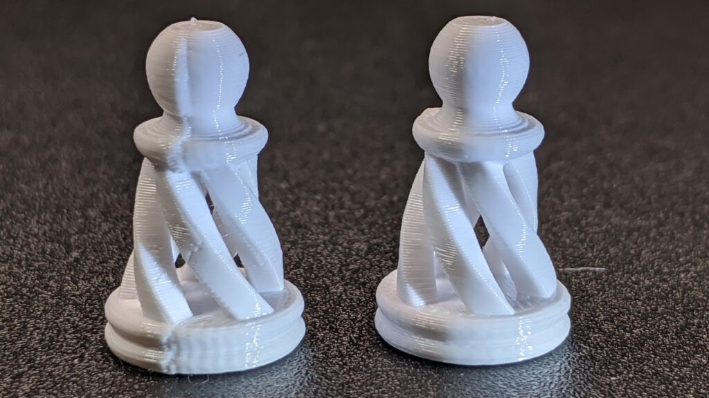 プリントの精度確認には下記のモデルをお借りして実施したいと思います。こちらはおしゃれなチェス駒 (ポーンを印刷します!) なのですが、最近印刷していて糸引きが気になっていたので、印刷中に空中に浮く部分があるようなモデルにしました。