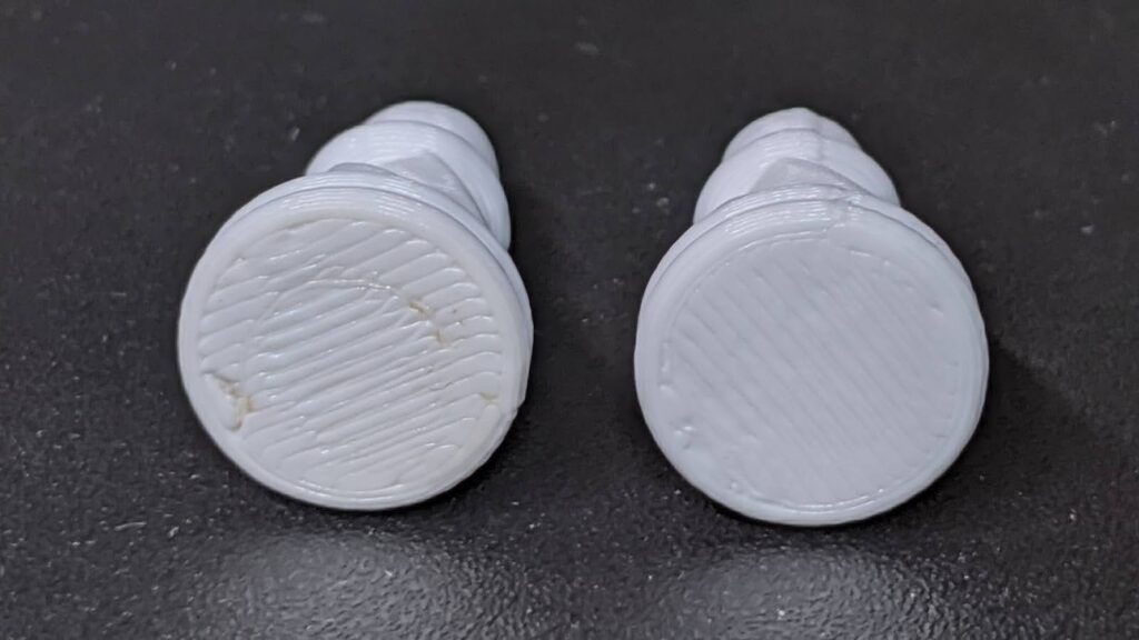 今回はそれぞれの段階で1個ずつしか印刷していないため、糸引きの本数などは偶然改善した可能性もありますが、底面を見る限りでは改善に向かっていると思います。